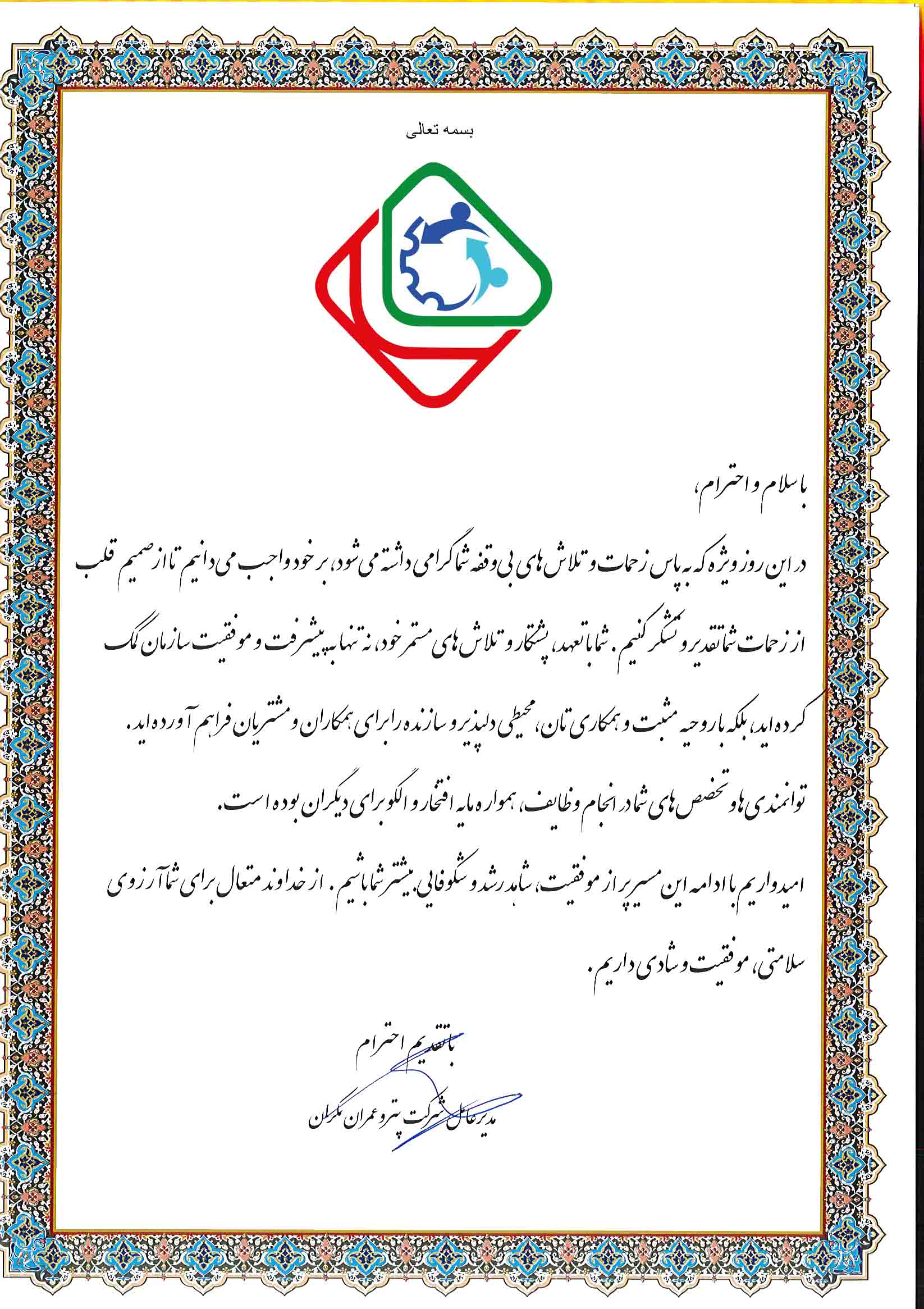تبریک روز کارمند توسط مدیرعامل پتروعمران